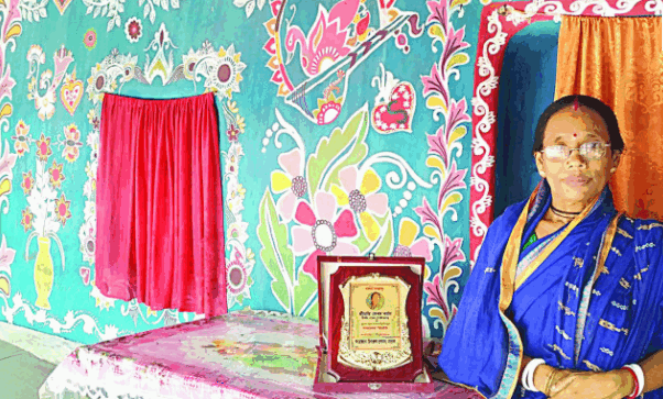 The main artisans of Alpana in Tikil village are the housewives and girls of this village They have perpetuated this tradition on the walls of the house year after year in the lineage Not a single wall inside or outside every house in the village of Alpana in Nachole is left out of the brush. From the kitchen to the bedroom, the girls fill every wall with hand-painted alpana.